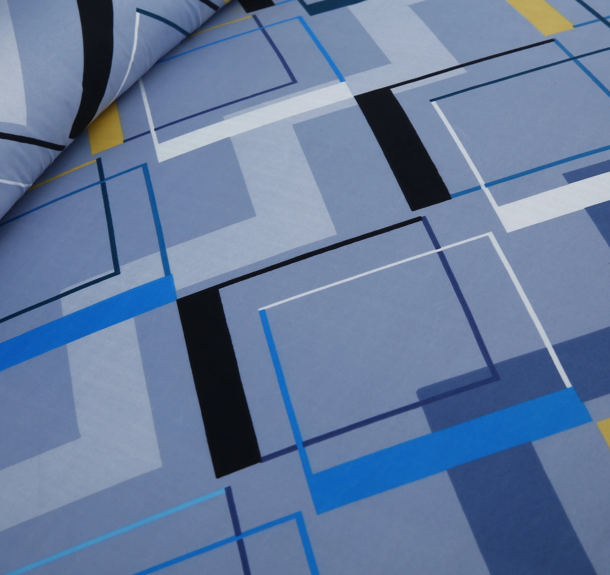 3 piece Blue Geometric Elegance | Modern Style & Comfort Bedsheet Set-2056